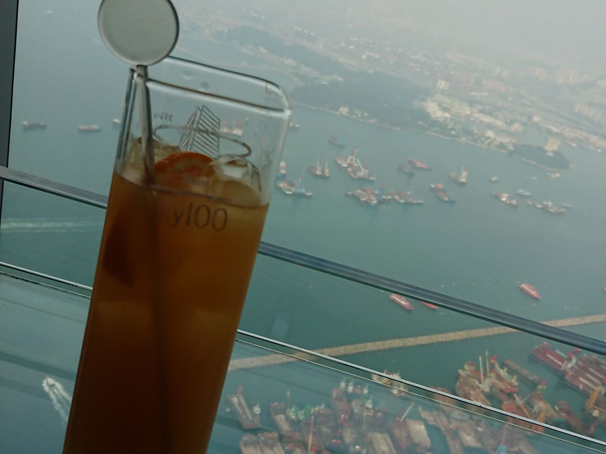 私が行った日はメンテナンスで東側(ちょうど香港のど真ん中が1番きれいに見える方向ですね)に入れなかったため、予約の人にはSky100の中のカフェで引き換えできるドリンク券をくれました。ただ、もらえるのは水かジュースのペットボトルで、カフェの飲み物をのめる訳ではなかったです。