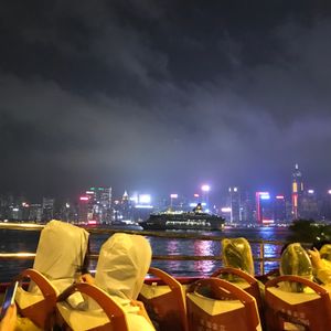 ビクトリアピークからの夜景は少し霞んでいたものの素晴らしかったです。ガイドさんもいろいろと教えてくれて親切でした。トラムは、夏休み中ということもあり大混雑、しかしながらバスで山頂まで行きましたのでしっかりと夜景も楽しめました。オープントップバスでの市内観光は楽しみにしておりましたが、途中から土砂降りに。レインコートの配布もありましたが、皆なずぶ濡れに。これも香港旅行の良い思い出ですね!