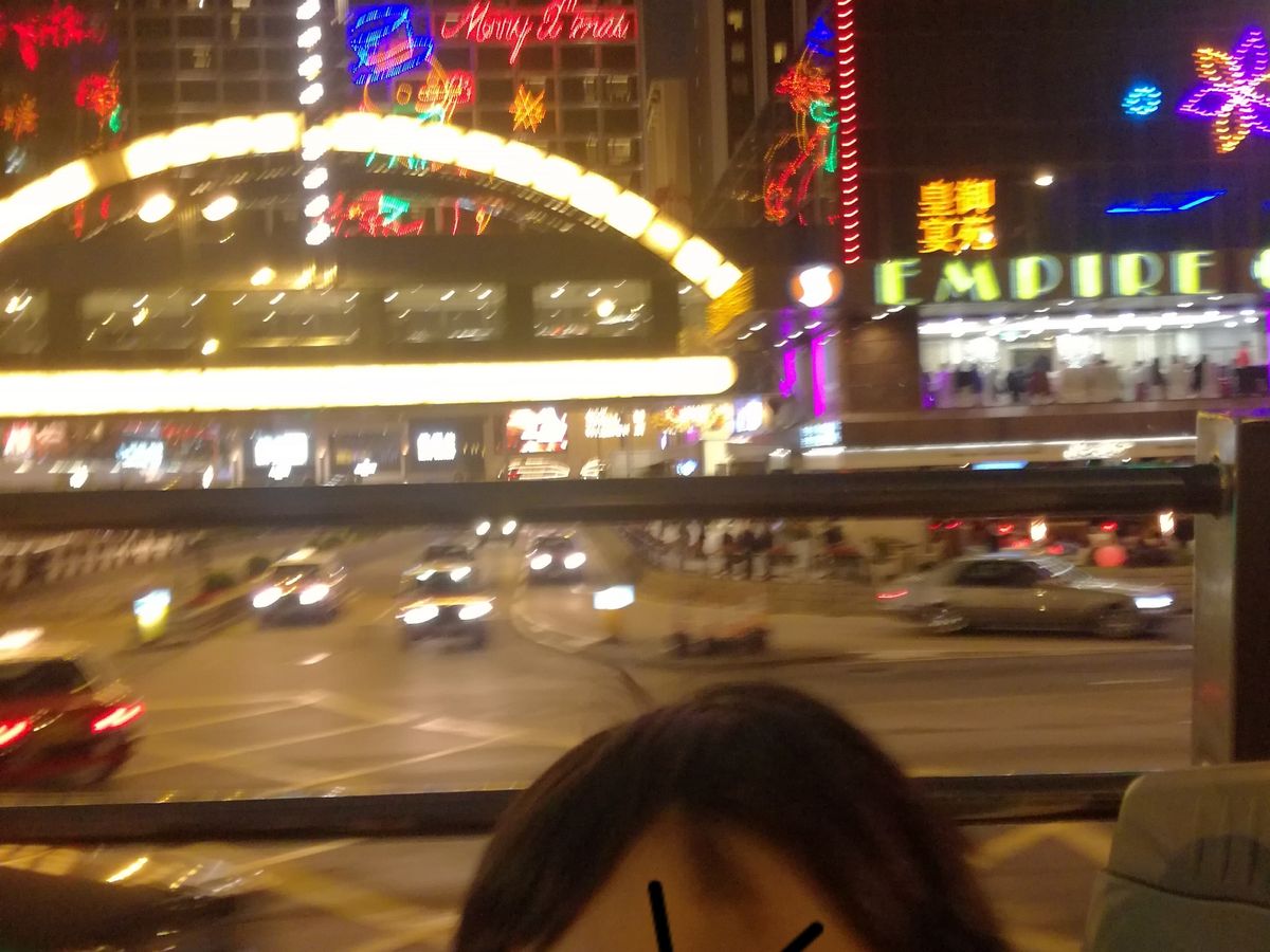 席は自由だということで真ん中くらいにすわりました。バスが走り出すとすぐに、香港島の夜景を見られて感動!クリスマス前ともありイルミネーションもとても奇麗でした!
