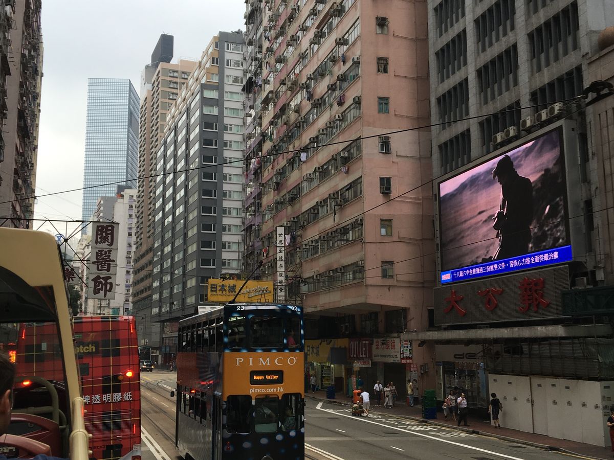 看板が頭上すれすれを通って…、という感覚(回数)は少なかったですが、香港の街を2階席の目線から、夜風に吹かれながら堪能できて、とても気持ち良かったです。