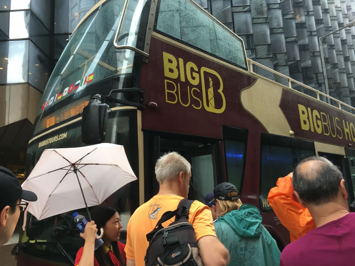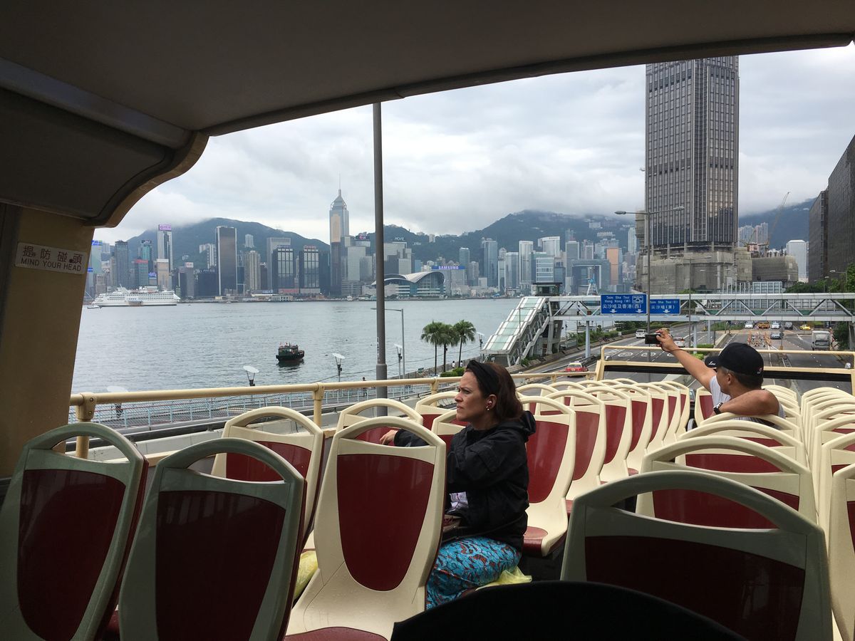 雨と曇りの繰り返しだったので、雨だとバスの窓がくもり景色は楽しめませんが、曇りだと二階部分でしっかり香港の街並みを楽しめました。