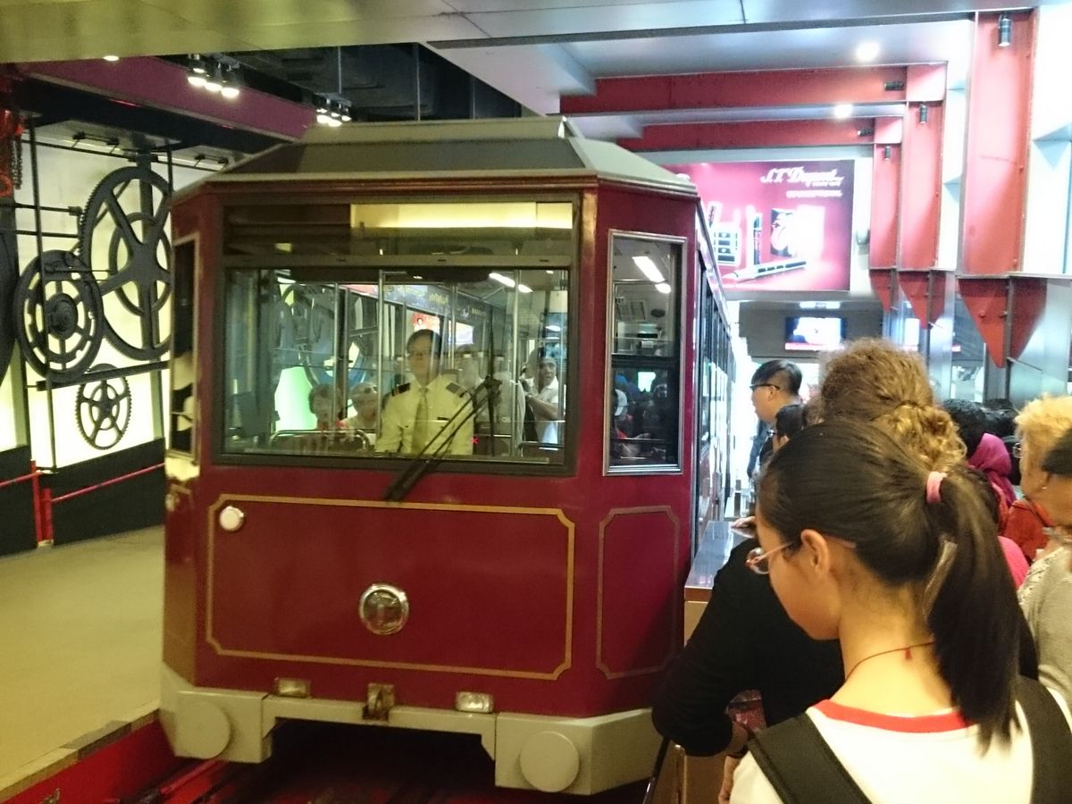 ビクトリアピークへ向かうピークトラムの駅は大行列でしたがツアーの参加者は優先的に乗車できました。