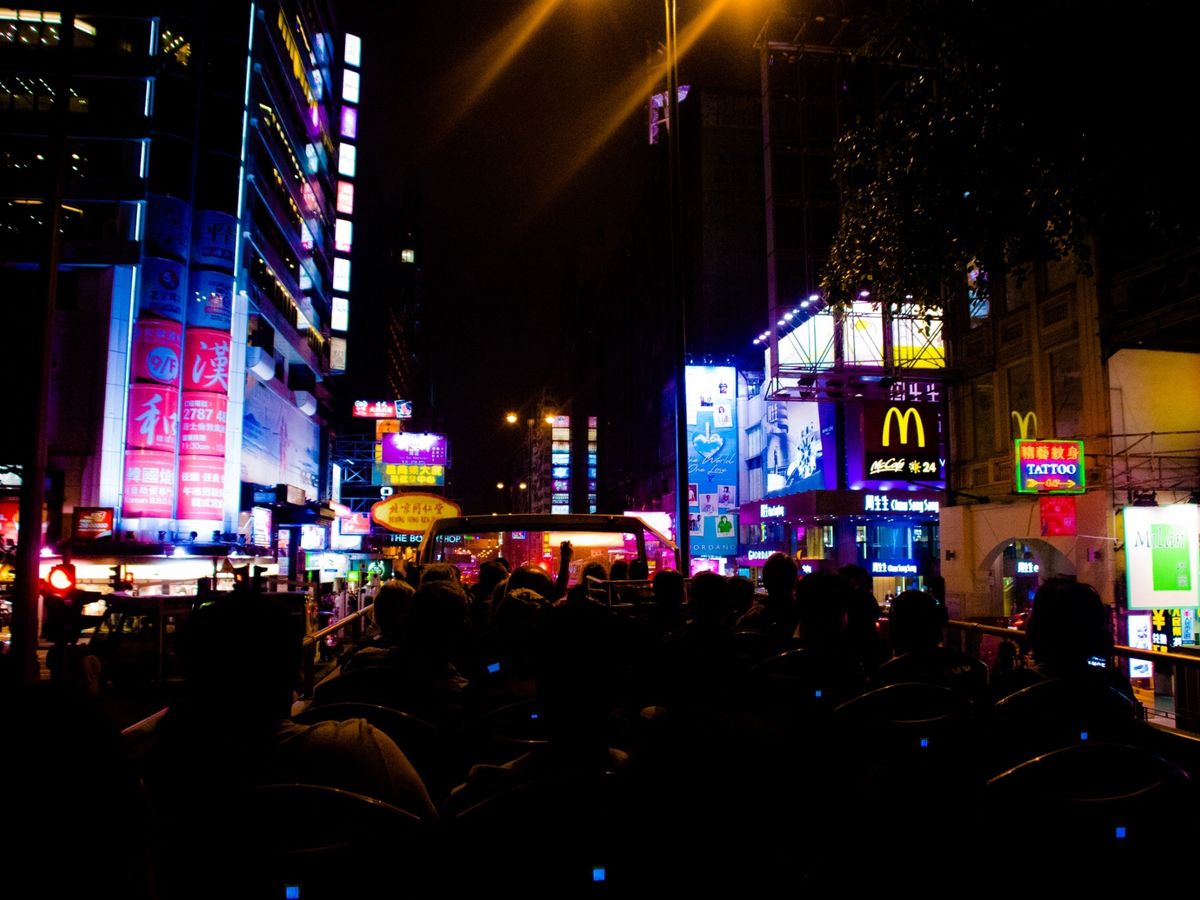 オープントップバスツアーは看板のない場所でもジェットコースターみたいにスピードがあってたのしかったです。香港のネオンサインを間近で感じられて良かったです。