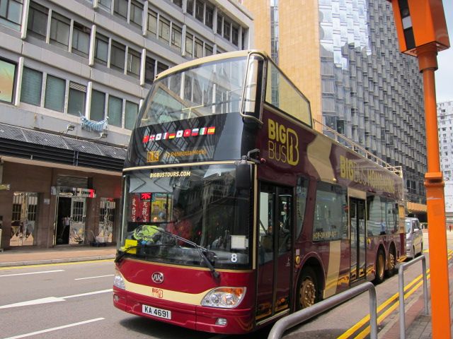 今回ゴールデンウィークの4/30に利用しました。3路線24時間乗り降り自由のチケットです。ナイトツアーは含まれないので要注意!夕方頃チケットを発券し、まず最終便のレッドラインに乗車。ビッグバス車内ではレインコートが貰えるので、雨対策も万全です。この日は土曜日で渋滞もしていたおかげで、日も暮れ始めナイトツアーのような雰囲気になりました。夜景も楽しめましたよ。翌日はグリーンラインに乗車、ビクトリアピークに向かいます。ここでビッグバス最大の利点が!日曜日のピークトラム乗り場は長蛇の列で大混乱。しかし、ビッグバスを下車すると赤いジャンパーのスタッフが待ち構え、トラム乗車券(スカイテラス入場券付)を手渡し、優先レーンから入場させてくれます。長蛇の列に並ばなくて良いのです!かなりの時間短縮が出来ます。ビクトリアピークから戻り、再びグリーンラインに乗車し、郊外に向かいます。スタンレーではサンパン船に乗船。おばあちゃん船長の小舟に乗りぐるっと一周。たいした事もなく終了。その後中環フェリー乗り場まで戻ります。そして、最後に九龍島側のブルーラインに乗車。これで全ての路線を制覇です。全ラインを乗るには、待ち時間や途中下車で意外と時間がかかりますので、余裕をもって乗車することをお勧めします。香港名物の2階建てバスからの景色を楽しめお勧めですよ!