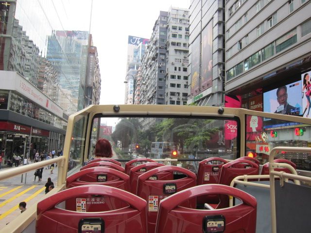 3回目の香港で、まだ二階建てバスに乗った事がありませんでしたので、看板すれすれを体験してみたいと思い、申し込みしました。
