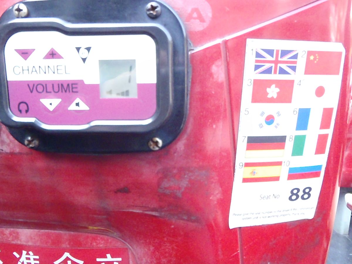 バスには10ヵ国の観光アナウンスが聞けるようにイヤホンがもらえます。