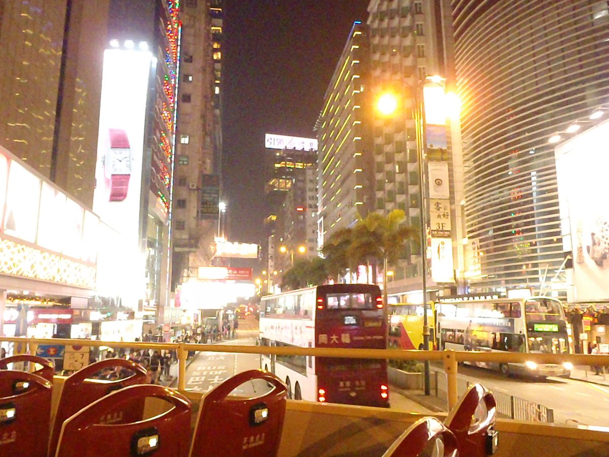 初香港旅行。香港と言えばオープントップバス、ネイザンロードでしよ!て事で予約しました。
