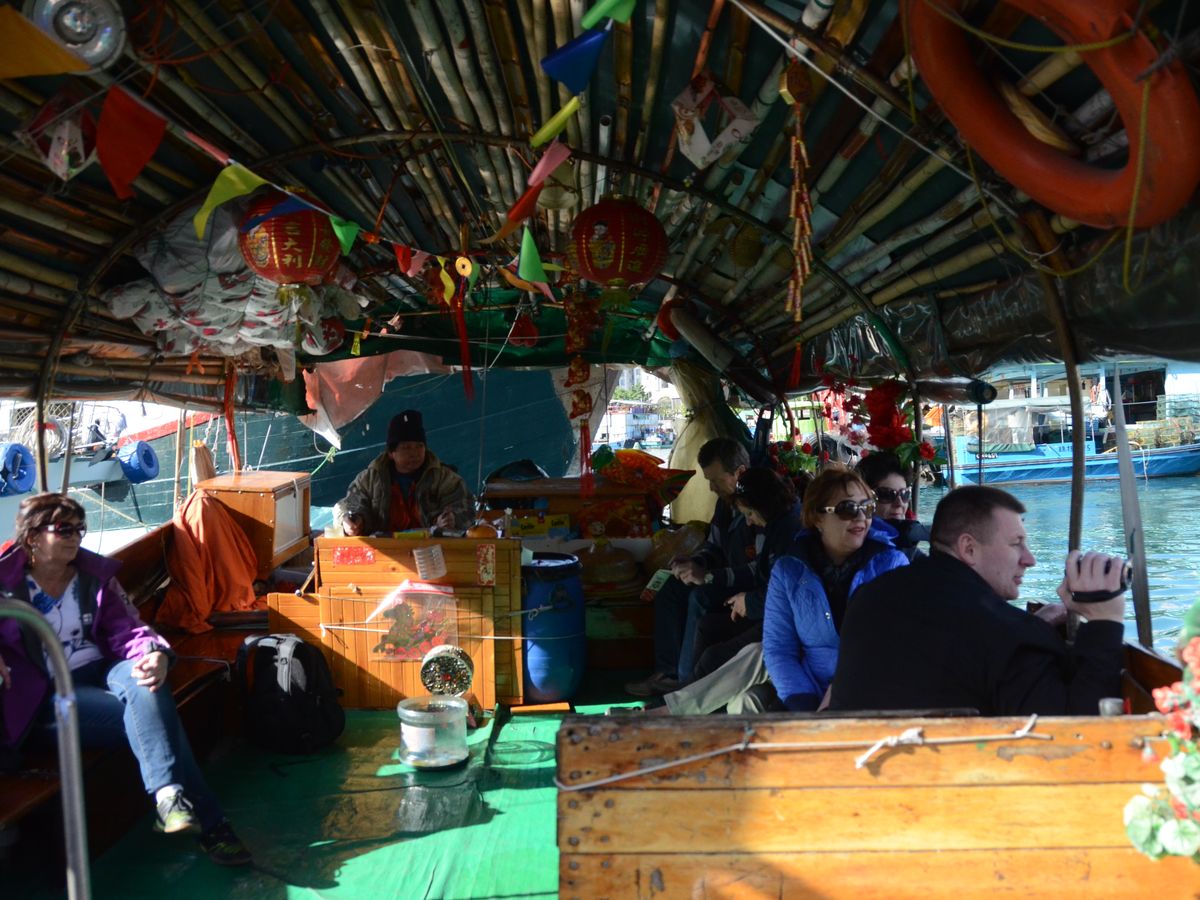 アバディーンと香港島南側のリゾートを回るグリーンルートに乗車しました。ピークへのトラムはクルーズ船が入ったり、大きな団体がいるとめちゃ混みで時間が読めないと聞かされていましたので、朝食後すぐに№15の山頂行きバス($8.8)で昇って、展望を楽しんでからがらがらのトラムで下山($15)。トラム東側からバスでフェリー乗り場に行き($2.5)、ビッグバスの2便(10時15分)に乗車します。レパルスベイではビーチ奥の天后廟まで往復し30分後のバスに滑り込み。(4年前に完成しているショッピングモールはテナントが入らず未だ無人なので、60分では時間が余ります)次のスタンレーマーケットで再び下車し、町を散策後海岸沿いのテラスにある屋台で海を見ながら昼食。90分後のバスでアバディーンに行き、現地でサンパン・ツアーに申し込み。最初は一人$50といってたオバハン、デラックスツアーのチケットを持っていたツアー客が6人しかいなかったので二人で$60に負けてくれました。