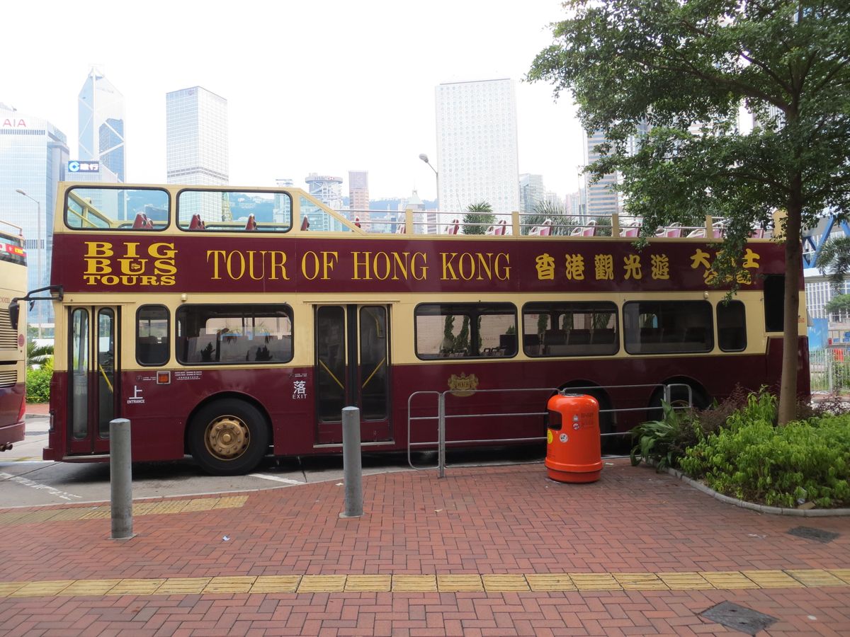 他のツアー参加者のコメントを読み期待してに申し込みましたが、コメントに記載されていたような「手の届きそうな頭上を看板が通過するスリル」は最後まで全く感じられませんでした。香港名物?の道路上に張り出した看板は、街並みの近代化と共にどんどん少なくなっているとの事。新宿のような繁華街を天井のないバスに乗って遊覧する程度と思った方が期待が裏切られる事はないように思います。元々ツアー料金もそれほど高くありませんので、コンプレインする程の事ではありませんが、ドライブ中のガイディングについては、早急に改善された方が良いように感じました。バス乗車から下車まで途切れる事なく車内スピーカーから割れるような大音量で説明が流され、とにかくうるさい。端的に言えば、右翼の街宣車に乗って観光させられた様な気分です。ガイディングについて内容を吟味した上で大切な要点のみに絞り、またスピーカーの音量を毎日きちんと確認チェックするか、ガイディングを希望する参加客のみにイヤホン型のオーディオ機械を配布する等の配慮をした方が参加客の満足度が高まるように感じられました。街宣車に乗って繁華街をドライブしても、街並みの情緒を楽しめる余地はありません。