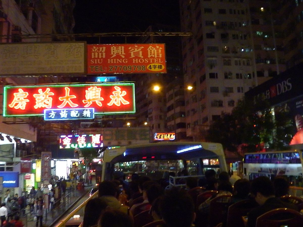 個人旅行でしたが、オープントップバスだけはツアーで参加しました。子ども連れだったので、家族割引が効くのはお得でよかったです。手が届くほどの看板は少なかったので迫力はいまいちでしたが、夜のネイザンロードをオープントップバスで走るのは気持ちよかったです。