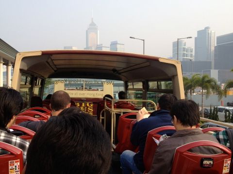 香港名物オープントップバスということで参加しましたが、ただのバスではなくて案内つきのバス、という点がとても良かったです。無料のイヤホンを受け取り、席にひとつひとつ付いている機械に取り付け、日本語の番号を選択すればつぎつぎと見えるビルやエリアの説明が流れます。ただ景色を楽しむだけと思っていたのですが、思わぬ感動でした。とても良い時間を過ごせました。