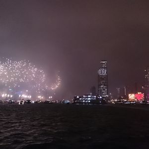 海上からみる花火は絶景でした。香港ならではの最高の年越しとなりました。
