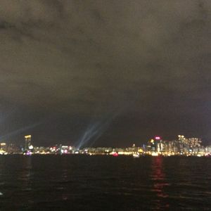 メインのシンフォニーオブライツですが…あいにくよ曇り空だったせいか、レーザーはあまり見えなかったですが、建物自体のライトアップは綺麗でした!!船上からは両岸の夜景がみえるのが地上からの鑑賞では味わえないよさだと思いました。船の揺れもさほど気にならず、途中肌寒くなったので、付属のドリンク&お菓子の券を用い小休憩もできました。ゆっくりと遊覧しながら夜景を満喫できたのはよかったです。