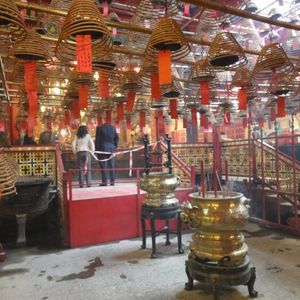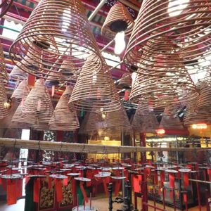大きな線香が渦を巻いており、写真で見るより迫力がありました。ガイドさんがお願い事が出来る様に長い線香を持ってきてくれてみんなでお願い事をしました。