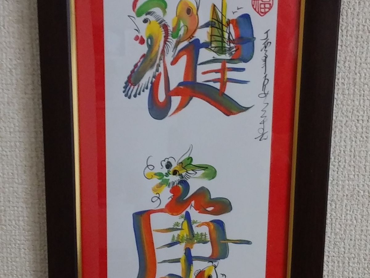 予約してたので書いた花文字を確認して受取終了でした。風水から見た、色、動物を丁寧に説明をして頂きました。