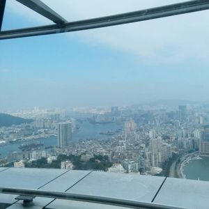 マカオタワーでは、湿度が高くガスが掛かったような天候で遠くが見渡せない空模様だった。
