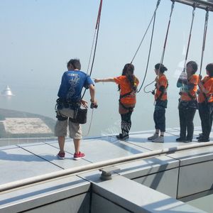 マカオタワーもお天気が良かったので昇ってみました。朝早かったので空いていましたが、偶然スカイウォークをするグループを窓越しでみる事が出来ました。