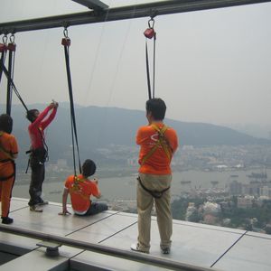 偶然、マカオタワーでバンジージャンプが見れました。ガイドさんが58階の方が良く見れるよと案内してくれました。