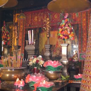 まずは海の女神を祭る「媽閣廟」ですが、観光客と参拝客でごった返していてよく見えません……でも、体中が線香の匂いにまぶされ、なんだかありがたい気持ちに。