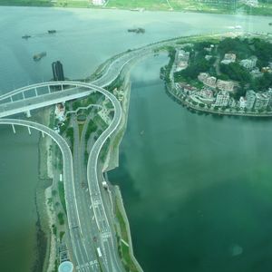 写真はマカオタワーからの景色です。ちょうど、女性がバンジージャンプにチャレンジしていました。
