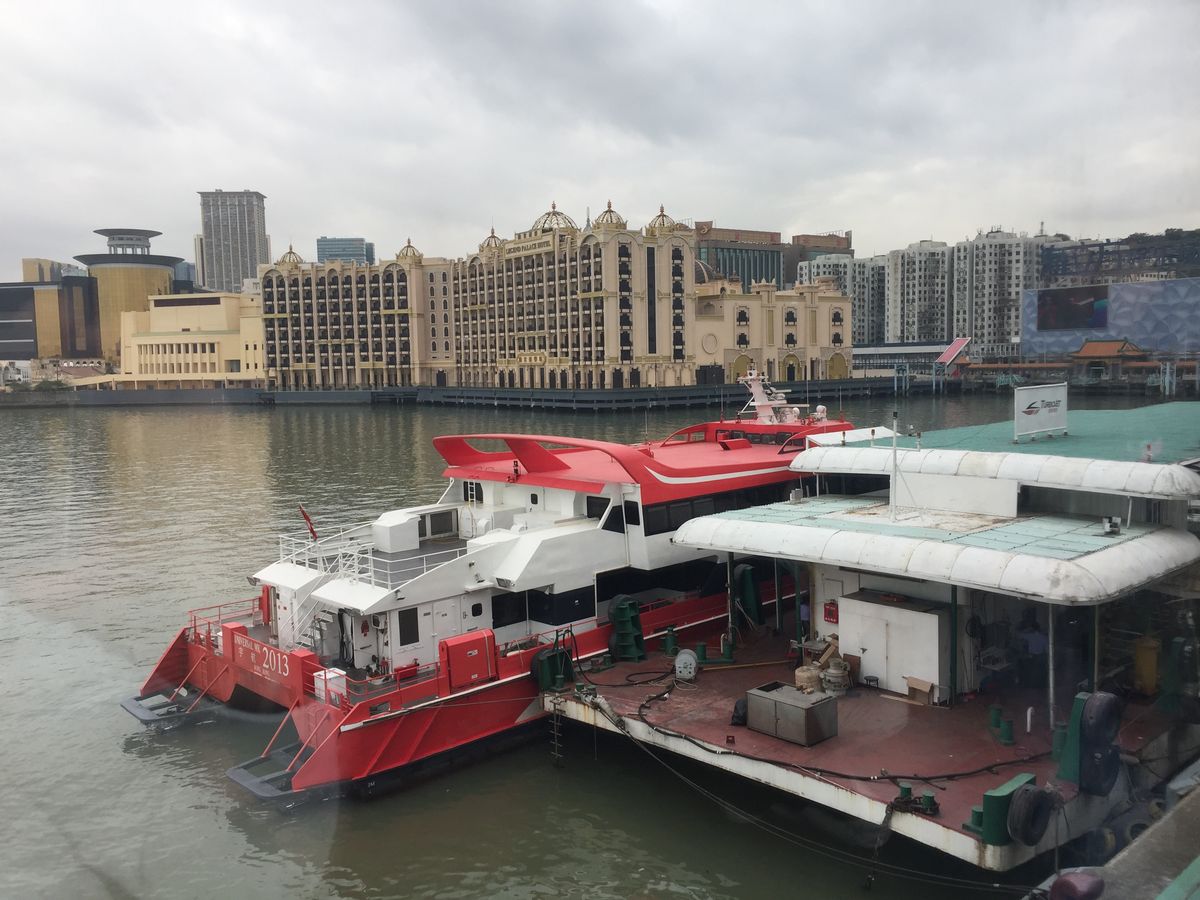 朝、ガイドさんが時刻通りに混載車でホテルにお迎えに来て下さり、高速船のチケットをいただき、船に乗り込むと1時間くらいでマカオに到着。