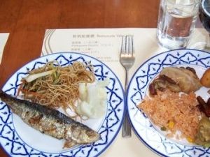 さて、マカオの昼食の件ですが、エンパイア―ホテルのショップでのビュッフェ料理の食べ放題でございますが、ビュッフェですので、確かに純粋なポルトガル料理だけではなく中華風の料理も西洋料理も混じっています。ただ、スープ、デザート含め単品料理でもポルトガル料理といわれているものもご用意させていただいておりました。