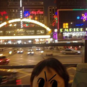 二階建てバスに初めて乗って、夜の街並みを満喫しました。