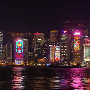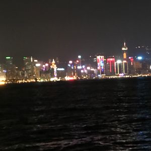 乗船前に埠頭から見るだけでもとても綺麗な九龍湾の夜景です。
