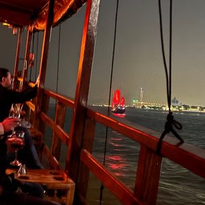 早めに行ったのですが、ホテルの部屋にスマホを忘れたのも悪く、集合場所がわかりにくかったです。でも船に乗ると涼しくてビールも美味しく、楽しかったです。ただ、コロナ前に見たシンフォニーオブライツよりさらにつまらないないようになっていて残念でした。船は良いですがショーは私的にはもういいかなという感じです。
