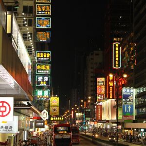 集合場所よりほぼ定刻にオープントップバスは出発。まずは湾沿いの道路を結構なスピードで走ります。そのまま加速しながらトンネルに入ると上のライトが頭に当たりそうな感覚でスリル満点。そこからネイサンロードに入り女人街の方までネオン街を進んで行きました。道路に突き出している看板は、その多くが老朽化で取り外されたそうで数はありませんでしたが、じゅうぶん楽しめました。ちなみにバスは右側に座った方が街が見えやすいです。
