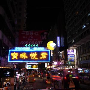 鮮やかな看板のネオンが主張し合う九龍のネイザン・ロードは、まさに香港映画の世界。ギリギリまでせり出した看板は、手を伸ばせば届くような位置!派手なネオンや夜遅くまで混み合う車のライトなどが、香港独特の雰囲気を醸し出します。