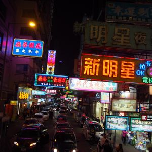 鮮やかな看板のネオンが主張し合う九龍のネイザン・ロードは、まさに香港映画の世界。ギリギリまでせり出した看板は、手を伸ばせば届くような位置!派手なネオンや夜遅くまで混み合う車のライトなどが、香港独特の雰囲気を醸し出します。