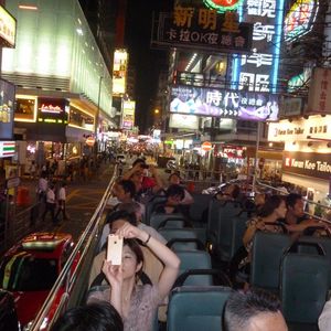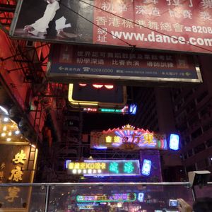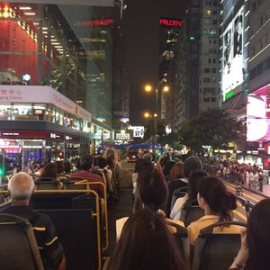 街中のネオン輝く看板の中をすり抜けるのも、香港ならではでした。看板をバックに写真を撮れる時間があるのですが、看板が少ない場所だったのが少し残念でした。(看板が多い場所は車も多く走っている道路なので長時間のバスの停車は無理だったのかもしれませんが。)