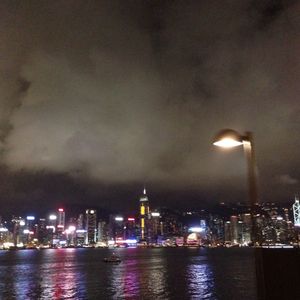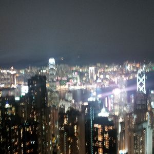 香港は霧が出るので、展望台に行けても夜景が見られるかはわからないとのことでした。列車を降りた時はかなりの霧と風でしたが、展望台まで歩くと風が幸いしてか、綺麗に夜景を見ることができました。