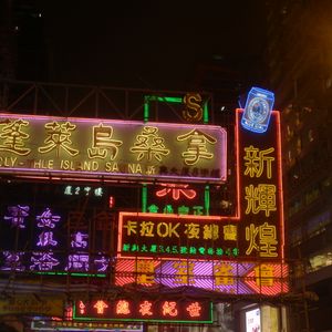 鮮やかな看板のネオンが主張し合う九龍のネイザン・ロードは、まさに香港映画の世界。ギリギリまでせり出した看板は、手を伸ばせば届くような位置!派手なネオンや夜遅くまで混み合う車のライトなどが、香港独特の雰囲気を醸し出します。