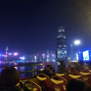 私(30代)母(60代)母娘2人旅、初めての香港、ビクトリアハーバーの綺麗な夜景を見ながらバスは爽快に走り抜けます!バスってこんなに早かったっけ?と思うほど風を切って走ります!11月末の参加では涼しいほどでした。冬場は上着を。夏場は快適!!ではないでしょうか。