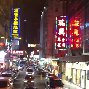 鮮やかな看板のネオンが主張し合う九龍のネイザン・ロードは、まさに香港映画の世界。ギリギリまでせり出した看板は、手を伸ばせば届くような位置!派手なネオンや夜遅くまで混み合う車のライトなどが、香港独特の雰囲気を醸し出します。