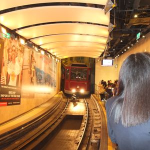 トラムは座れなかったのですが、急傾斜でスリル満点。夜景も綺麗でした。山頂の滞在は、20分程度。展望台で景色を見て写真を撮るだけなら充分です。さらに山頂に建つ、ルーフトップのあるビルに登りたいのであれば、他のツアーをオススメします。ただ、そのビルに登るために更に待たされますし、景色はビルに登らなくても充分見られますよ♪