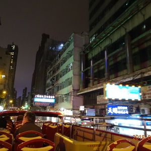 オープントップバスから見る夜の香港の街並みはライトアップされており、とても素敵でした。オープントップバスは屋根がないので、とてもスリリングでした。ただガイドさんの日本語が、発音が間違っているため、全く聞き取れず残念でした。