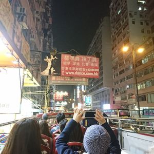 でもさすが2階建てバス!車高がメチャクチャ高いので眺望は最高!! そこからチムサーチョイや女人街、男人街の街並みがよくわかります! そして、運転手さんがスピードを出して走るので高架を走り抜ける時はスリル満点!悲鳴や笑い声で溢れ、ちょっとした絶叫マシンにも負けないほどの迫力でした! もう一度のりたいです。ガイドさんは日本語が堪能で案内も丁寧。とても安心できたし楽しかったです。