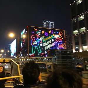 オープントップバスは、すごい気持ちよくて最高でした。ネオンが目立つ場所で写真撮影もしてくれました。