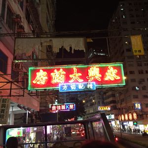 香港の綺麗な夜景と颯爽と駆け抜ける爽快感を味わいたくて申し込みました。しかしタイミングが悪く、開始時間になると雨が降ってきてしまいました。ガイドさんがカッパを用意して下さってたのでそこは感謝です。バスが走り出すと雨が強すぎて景色を楽しむどころか前を向けない!笑。ガイドさんの声も雨で掻き消されて聞こえない。。。天気が悪かったのでこの評価というのもありますが、雨がどうこうよりも、そこまで颯爽と駆け抜けてもないし、香港らしいネオン街の看板はちらほらしか見えませんでした。投稿している写真は唯一頭上を掠めた看板です。
