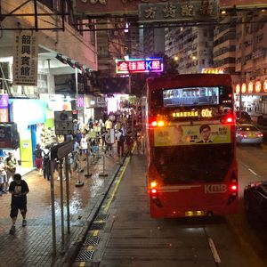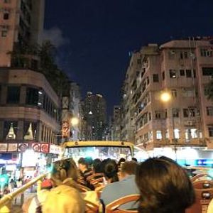 平日だったのでトラムに10分も並ばずに乗れたのはラッキーでした。トラム内は満席でしたが…。頂上での自由時間も30分?短い!って思いましたが、夜景見て写真撮って、トイレ行ってと実際ちょうどよかったです。他に見るものも特になかったので。ガイドさんがすごく面白い方でバスの中で大笑いしました。オープントップバスは風が気持ちよくて楽しかったですが、数年前にもう営業してないお店の看板の大幅な撤去があったそうで、イメージしていたほどたくさんの看板はなかったです。帰りは女人街で降ろしてもらったのでそのまま散策して近くのホテルまで帰れたのが良かったです。雨だとかなりつらいかもしれないですね。