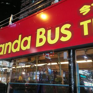 写真撮影も他のバスが停車している為、たいしてネオンのない場所で…