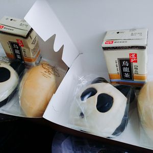バス車内でパンダパン、カレーパン、烏龍茶を渡され、車内で汚さないように食べて大丈夫とのことであった。味は普通。