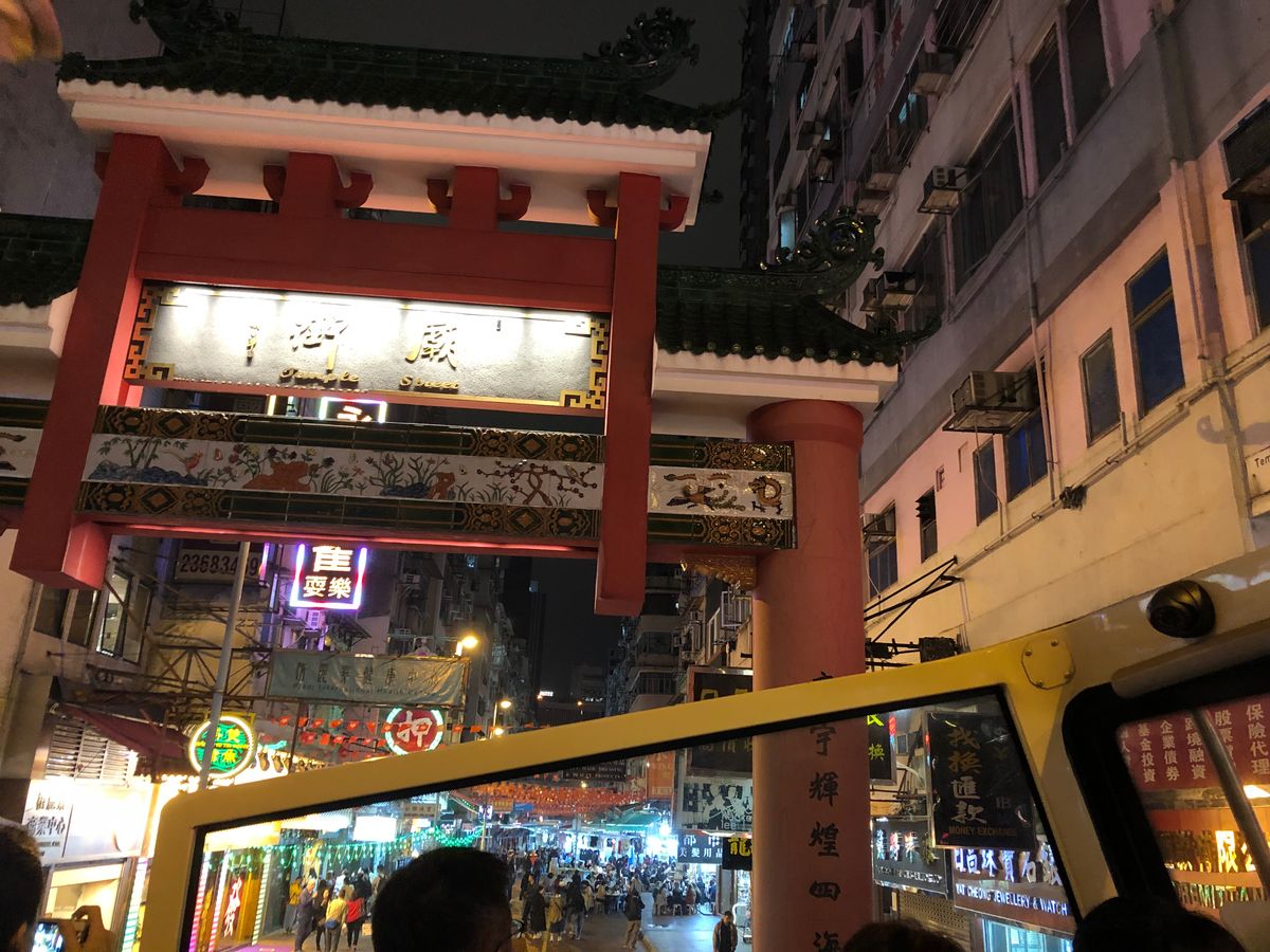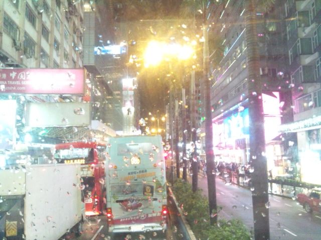 土曜日の夕方だったので、ビクトリアピークに行くピークトラム乗り場はかなりの大混雑・・・。聞くところによるとトラムに乗るまで2~3時間待ちとの事。しかし我々は優先乗車だったので30分ほどで車内に乗り込めました。これだけでも参加してよかったと痛感。あいにくのガスのせいで夜景はまるっきり見ることはできませんでしたが下山途中の夜景スポットで緊急停車し、フォトタイムを取ってくれました。その後、アバディーンにある水上レストランの夜景スポットに行きフォトタイム。ここで香港島とお別れし九龍へ戻ってきてオープントップバスに乗り換え。少し肌寒かったが爽快な気分でネイザンロードを走行し、男人街入り口付近のでかい電飾看板の前でフォトタイム。その後、女人街へ行き下車は自由と言うことで4/5の方が下車。