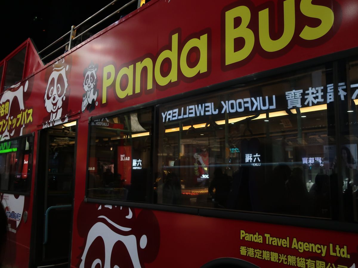 夕方に到着して、その日の夜にツアー参加しました。20時からのシンフォニーオブライツを見てから充分に間に合う集合時間と場所だったので、このツアーを選びました。オープントップバスなので、軽いジェットコースターのような感覚で楽しめます!旧正月の期間ということもあり、街が色とりどりの電飾で綺麗でした。日本語のガイドさんも一生懸命いろいろ話してくれるのですが、マイクのせいなのか街中の喧騒のせいなのか、ところどころ聞こえないところがあり、そこは少し惜しかったです。映画のロケ地も巡れますし、最後は女人街での解散も可能なので、旅行初日としてはとてもおすすめです。