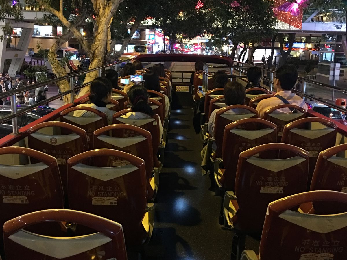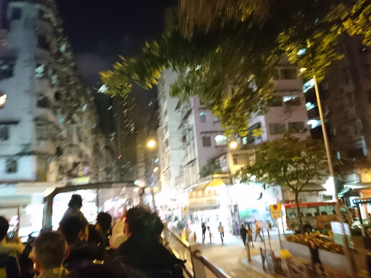 オープントップバスは、遊園地のアトラクション的な感じで楽しく、香港の繁華街を周遊でき、とても満足でした。