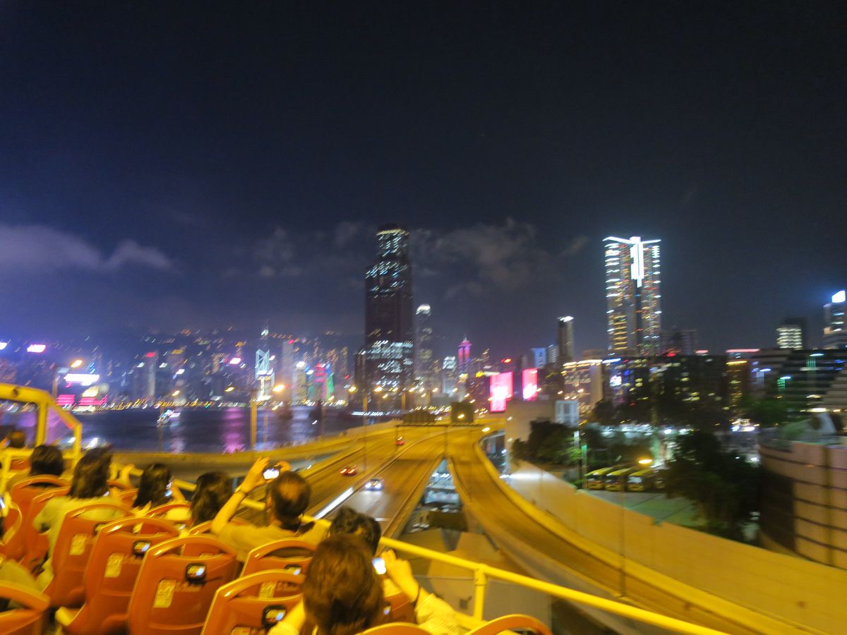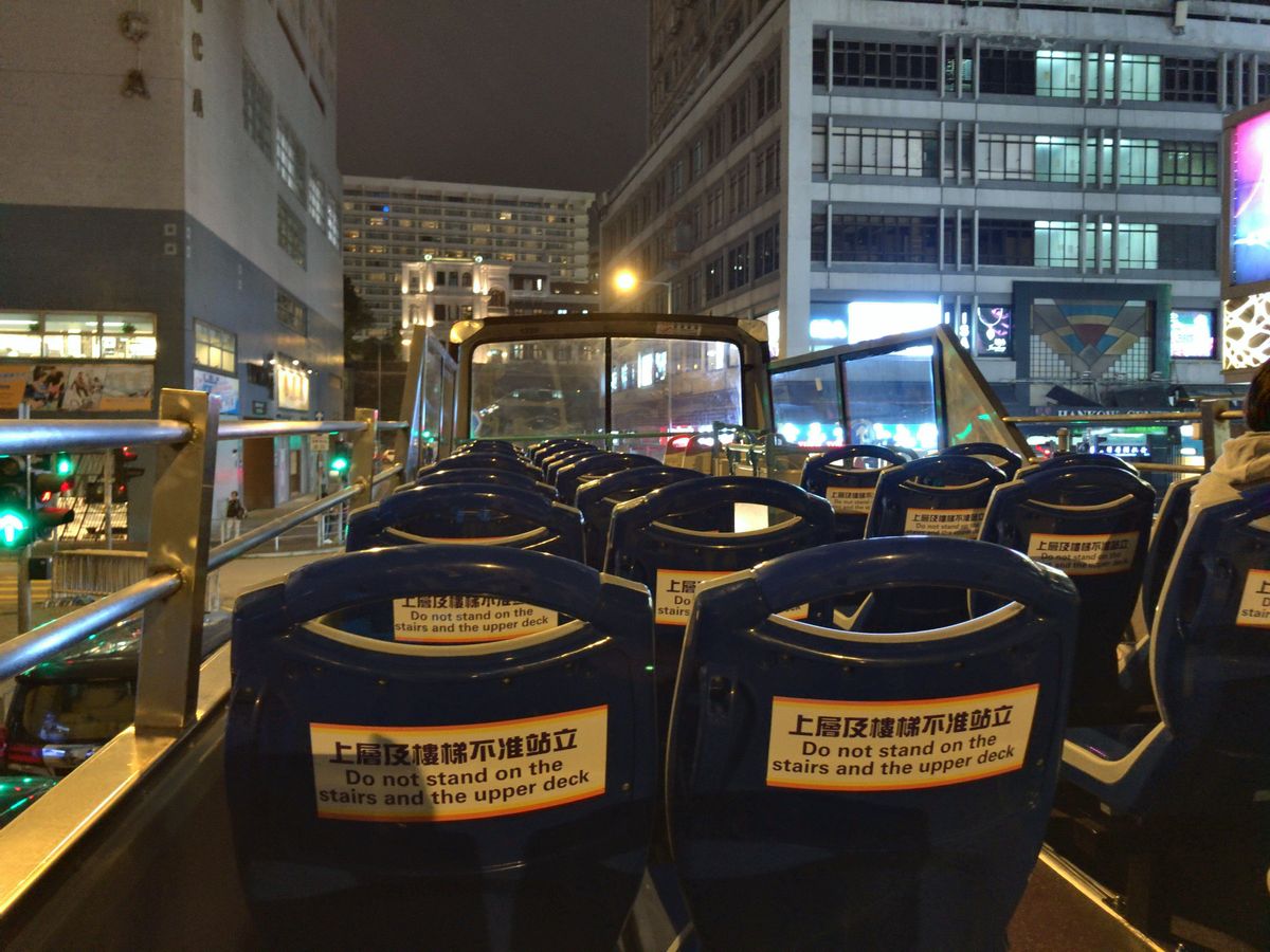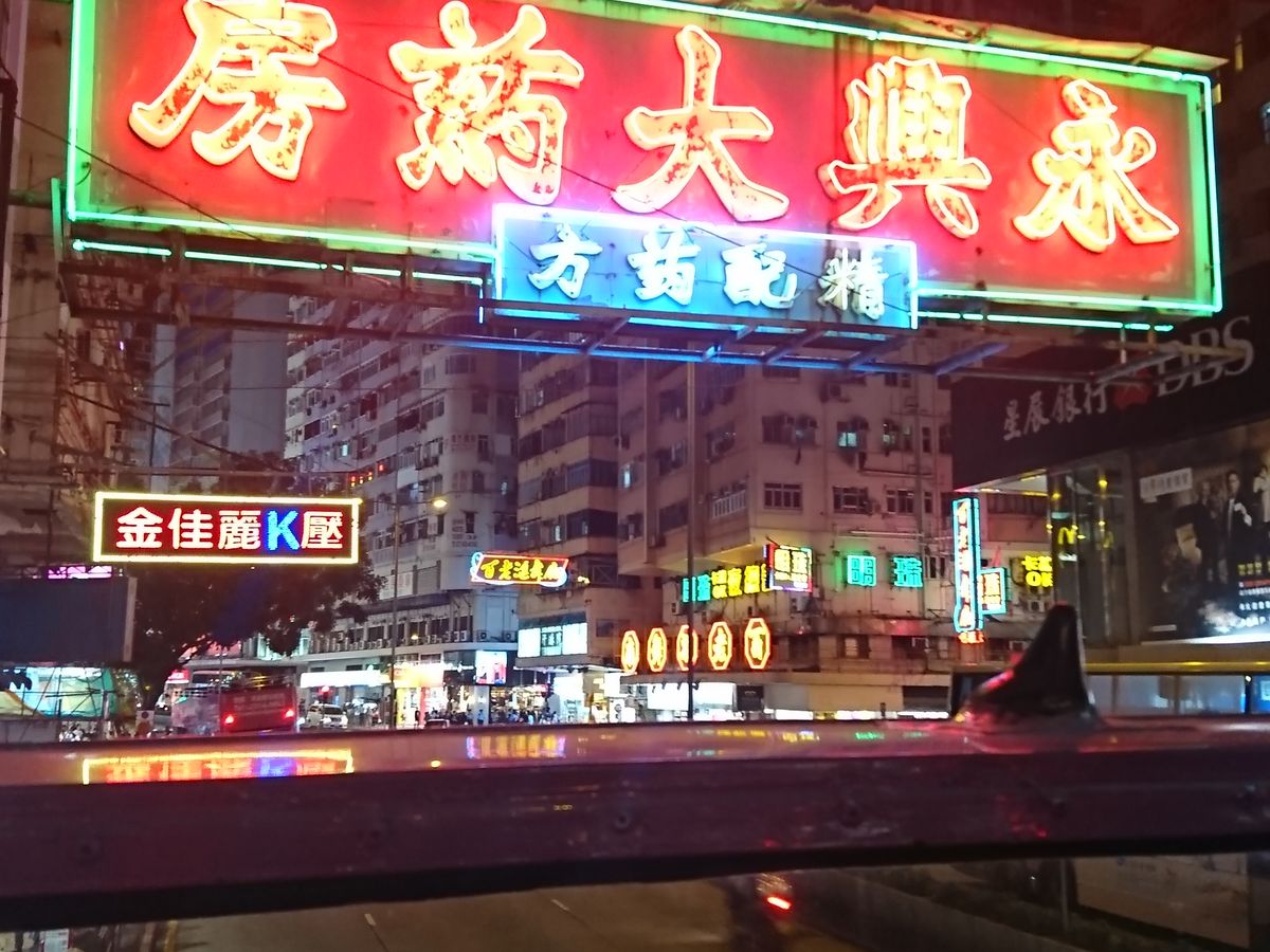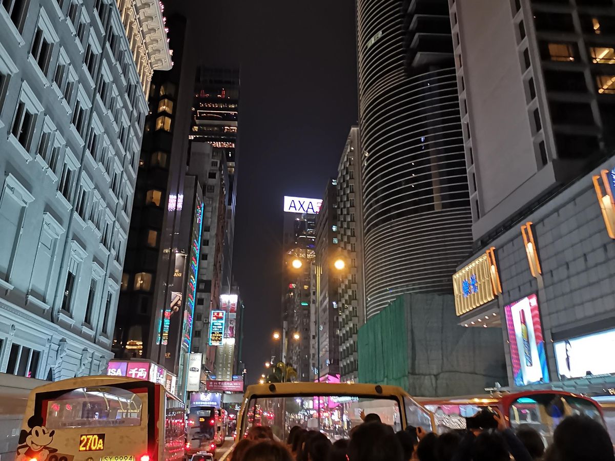 昔ほどネオン街らしさはありませんでしたが、香港らしい二階建てバス&オープントップバスを堪能できました。