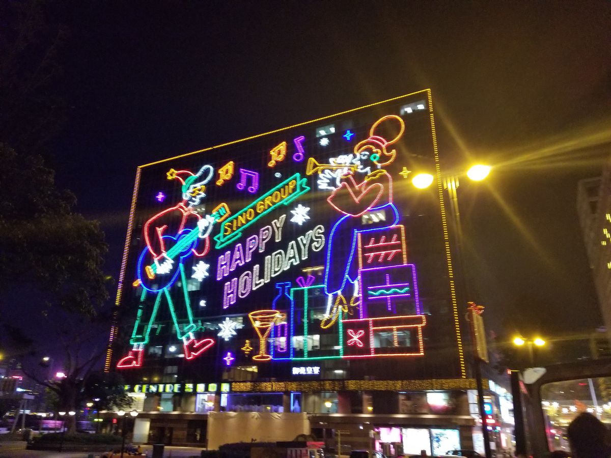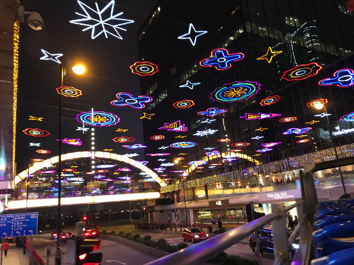 オープントップバスも、寒かったけどショッピングビルやホテルがクリスマスのイルミネーションをしていてキレイでした。